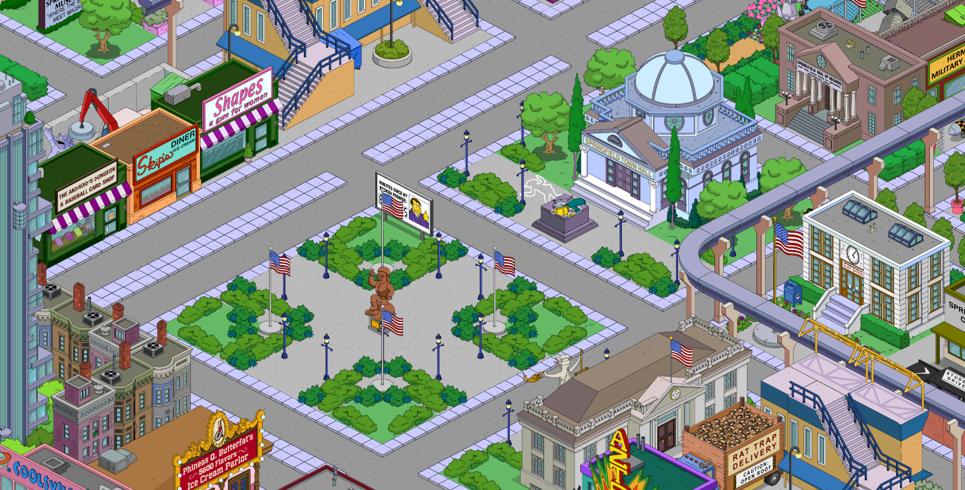 - Κατασκευή Κτηρίων: Μπορείτε να χτίσετε εμβληματικά κτήρια από τη σειρά, όπως το Moe’s Tavern, το Kwik-E-Mart και το Springfield Elementary.